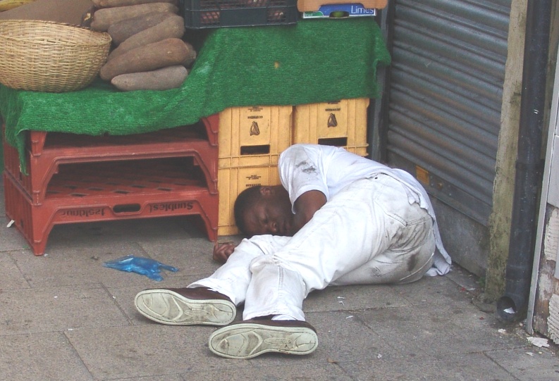 ...................................................................Sleeping it off - oblivious to the bustle of the Saturday street market in Deptford high street